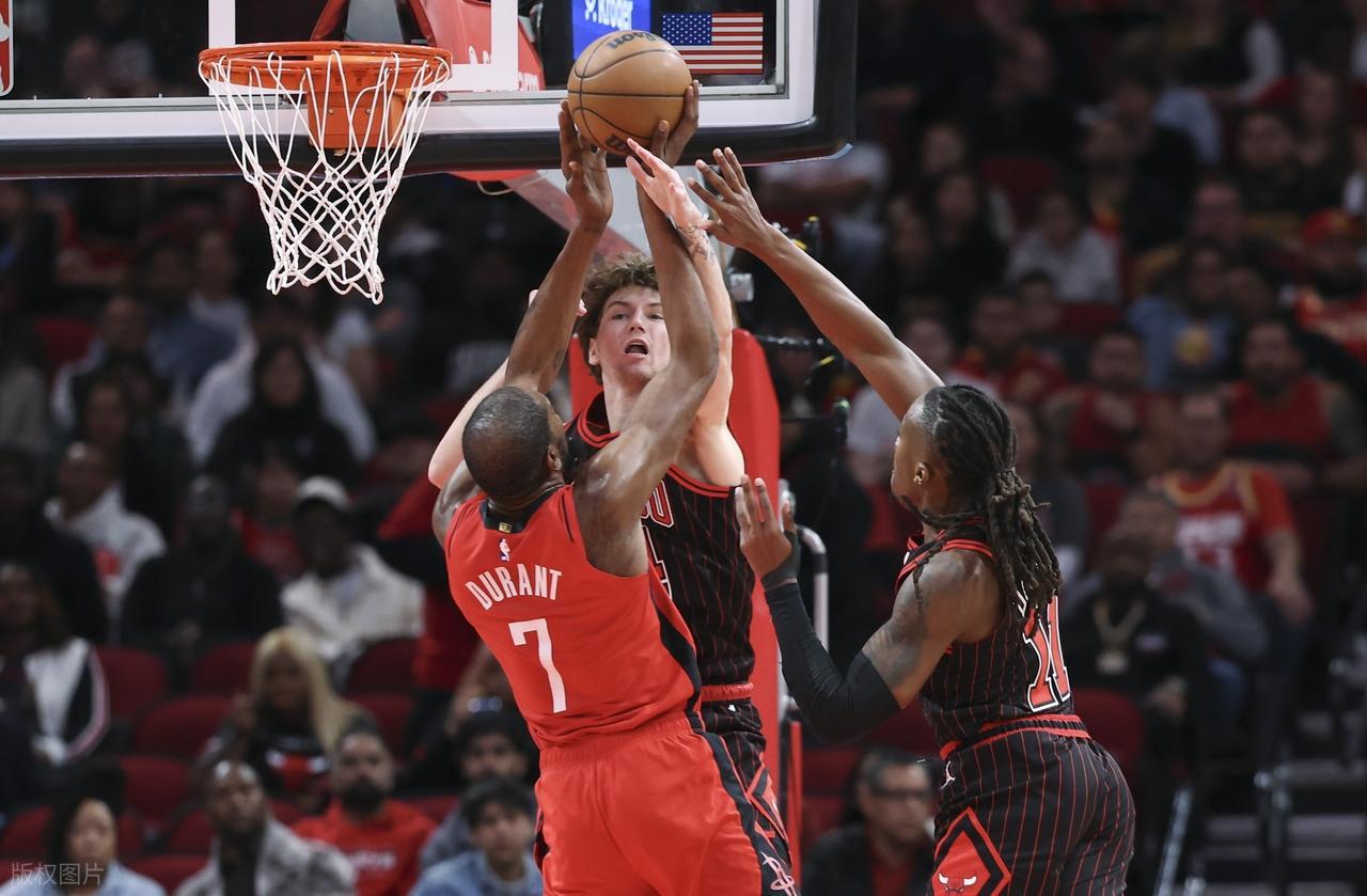相比于进攻端缺少体系与配合,火箭在防守端的问题更大,申京、谢泼德都是防守漏洞,如果再加上亚当斯也在场,火箭的外线很容易被射穿,要知道,公牛今天的3分还不算很准,前两节18中6,33%的3分命中率!上半场两队主要球员的数据如下:申京得到13分,杜兰特12分7篮板,阿门、谢泼德各8分,公牛这边琼斯13分,史密斯12分,许尔特9分,武切维奇8分4篮板3助攻。